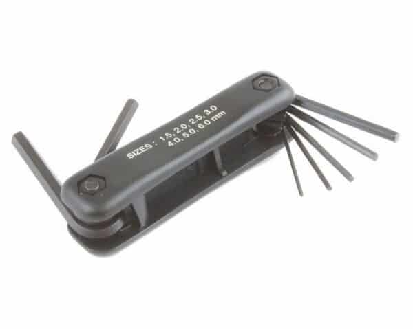 • Werkzeuge: 7 Inbusschlüssel (1,5 mm, 2 mm, 2,5 mm, 3 mm, 4 mm, 5 mm, 6 mm), 10 mm Ratschenschlüssel, 13 mm Ratschenschlüssel