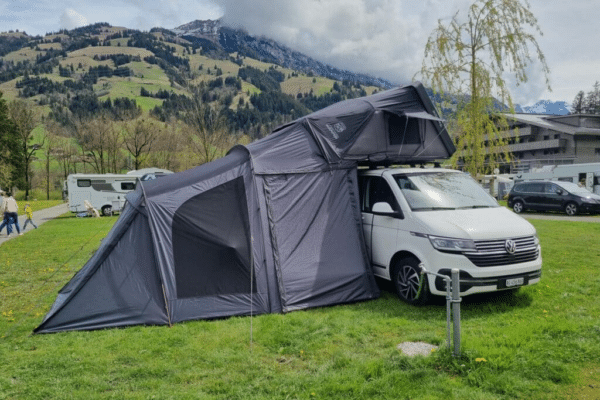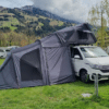 Ob als Umkleidekabine, Küche, Bad oder einfach grösseres Wohnzimmer – das iKamper Anbauzelt Plus bietet zahlreiche Nutzungsmöglichkeiten und ist nun noch deutlich grösser gegenüber dem Vorgängermodell. Zudem ist das Anbauzelt Plus, wenn man es korrekt verspannt, selbststehend. Dies ist ein Riesenvorteil, wenn man das Auto während seiner Reise für Tagesausflüge nutzen möchte. Schlechtwettertage und lange Aufenthalte werden dank des zusätzlichen Stauraums des Anbauzelt Plus somit noch angenehmer. Unser Anbauzelt Plus wird mit einem Ausstellset vermietet, so dass ihr die Möglichkeit zum Öffnen des Zeltes bei schönem Wetter habt.