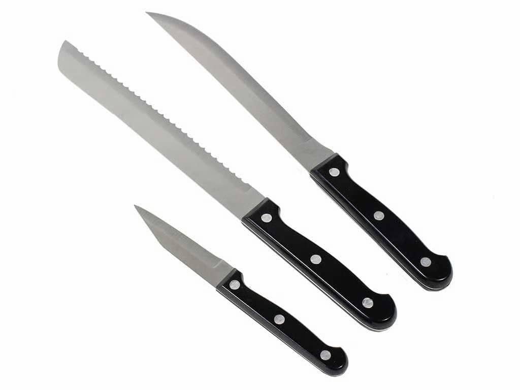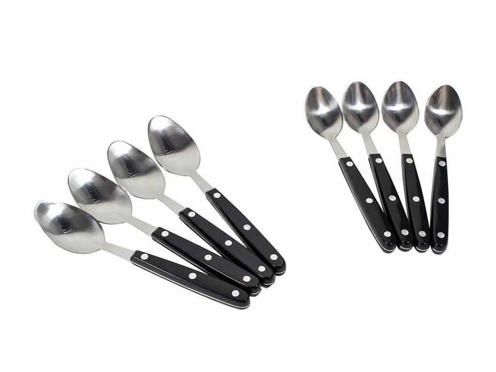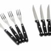 Dies ist nicht das übliche billige, schnell kaputtgehende „Einweg“ Besteck. Der wertige Besteckgriff lässt sich komfortabel in die Hand nehmen. Dreifachvernietete Messergriffe und doppelvernietete Gabel- und Löffelgriffe bieten besondere Stabilität. Professionelle aus robustem Edelstahl geschmiedete Messerklingen mit schwarzen Kunststoffgriffen. Die geschmiedete Stahlklinge ist besonders stark und resistent gegen Lochfrass und Rostflecken. Die Steakmesser haben hochwertige mikroverzahnte Schneiden.