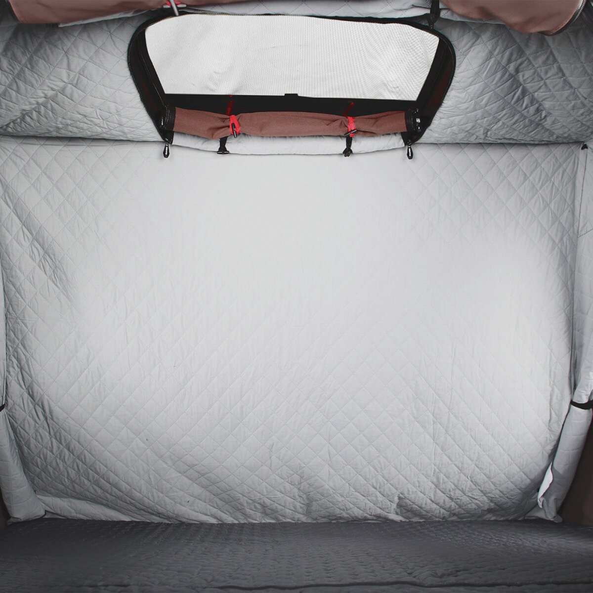 Das Innenzelt, welches passend für iKamper Skycamp 3.0 Mini ist, sorgt durch den festen, hellen Baumwollstoff insbesondere bei kälteren Temperaturen für einen angenehmeren Schlafkomfort. Es nimmt zum Einen die Feuchtigkeit in der Zeltluft, die durch das Atmen sowie die Temperaturunterschiede zwischen Tag und Nacht entstehen auf und bildet zudem eine bessere Wärmeisolation gegenüber der Umgebung. So bleibt es auch bei Kälte schön warm im Zelt und die Kondensation an den Metallteilen des Zeltes wird vermieden. Das Innenzelt wird einfach an die vorhandenen Stangen befestigt und ist sehr schnell eingebaut.