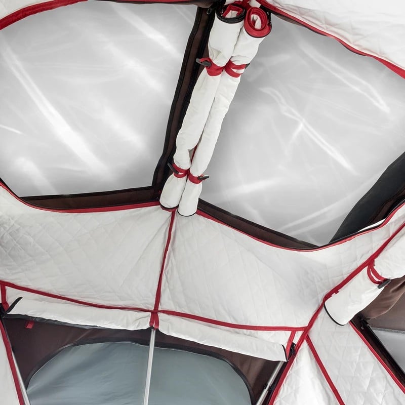Das Innenzelt, welches passend für iKamper X-Cover 2.0 ist, sorgt durch den festen, hellen Baumwollstoff insbesondere bei kälteren Temperaturen für einen angenehmeren Schlafkomfort. Es nimmt zum Einen die Feuchtigkeit in der Zeltluft, die durch das Atmen sowie die Temperaturunterschiede zwischen Tag und Nacht entstehen auf und bildet zudem eine bessere Wärmeisolation gegenüber der Umgebung. So bleibt es auch bei Kälte schön warm im Zelt und die Kondensation an den Metallteilen des Zeltes wird vermieden. Das Innenzelt wird einfach an die vorhandenen Stangen befestigt und ist sehr schnell eingebaut.