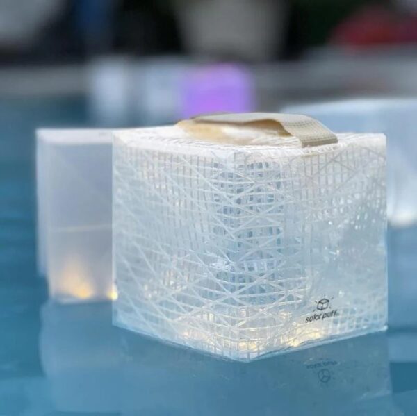 Der SolarPuff ist ein richtiges Allround Talent und ist der perfekte Begleiter bei allen erdenklichen Outdoor Aktivitäten wie Camping oder Wandern. Über den Klettverschluss am Griff lässt sich der praktische Würfel an Rucksack und Co. befestigen und sammelt so schon auf dem Weg zum Ziel Energie. Angekommen ist die Laterne nun sofort einsatzbereit! Auch im Garten oder auf dem Balkon der SolarPuff ein richtiger Hingucker! Einmal aufgeladen ist der SolarPuff in jeder Situation einsatzbereit und spendet zuverlässig Licht. So entsteht eine angenehme Lichtquelle beim abendlichen Wein oder Lichtakzente auf dem Balkon. Auch im Haus hilft der SolarPuff dabei, eine Atmosphäre zum Wohlfühlen zu schaffen und dient bei Stromausfall als verlässliche Lichtquelle! Einmal aufgeladen speichert SolarPuff die gesammelte Energie für ca. 3 Monate. Platz findet sich für SolarPuff immer! Der robuste PET Kubus ist an eine Origami Technik angelehnt, die es dem Würfel erlaubt auf eine Dicke von unter 2 cm zusammengefaltet zu werden.